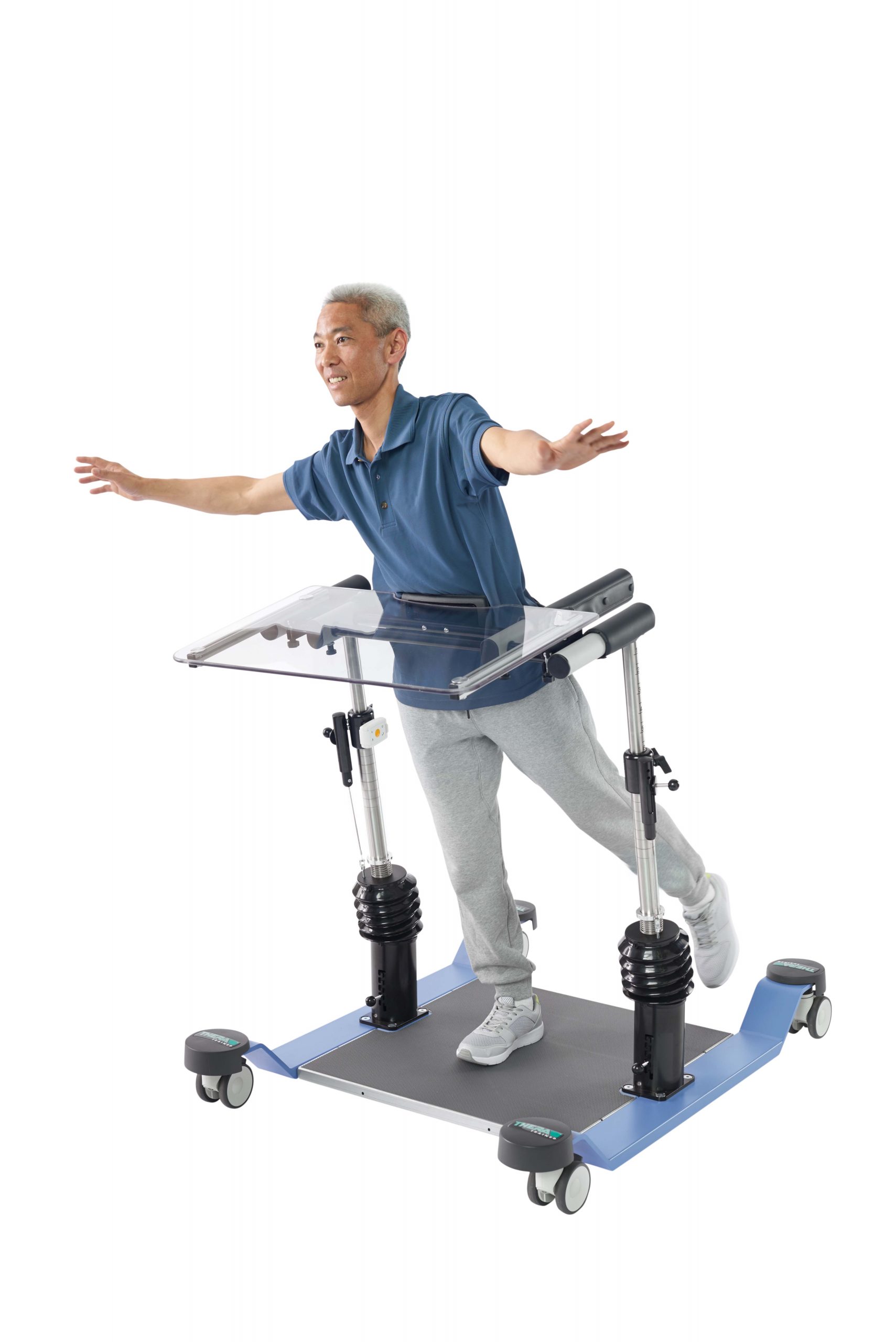 Er ist ideal auf die Bedürfnisse von leicht betroffenen Menschen abgestimmt, die selbstständig stehen können aber in hohem Maße sturzgefährdet sind und unter Gleichgewichts- und Koordinationsstörungen leiden.
