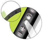 - Die aktuelle Kraftskala wird angezeigt und kann über die Schaltflächen + und – auf der rechten Seite der Pads justiert werden.