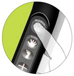 - Die Kraftskala kann mit der Hand oder mit dem Fuß aktiviert werden. Wenn die gewünschte Funktion ausgewählt worden ist, reagieren die Pads auf die Kraft bzw. das Gewicht. Das farbige Lichtsignal zeigt bei Belastung dynamisch die Änderungen der Kraft oder des Gewichts an.