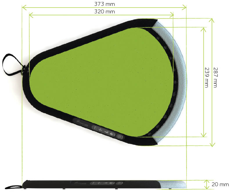 Abmessungen: 373 x 287 x 20 mm (LxBxH)